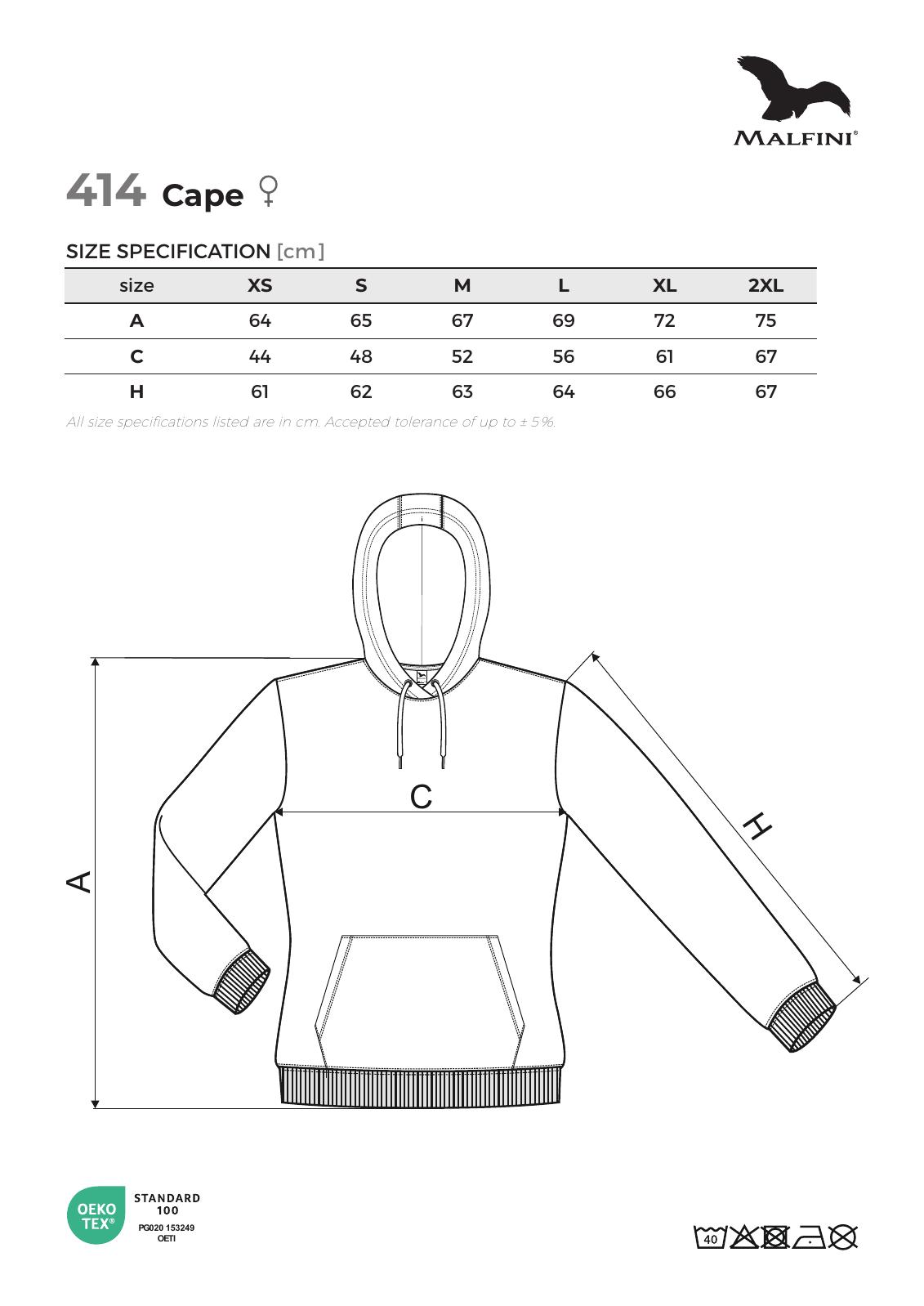 Malfini Cape 414 – Ženska hoodica s kapuljačom (320 g/m²)