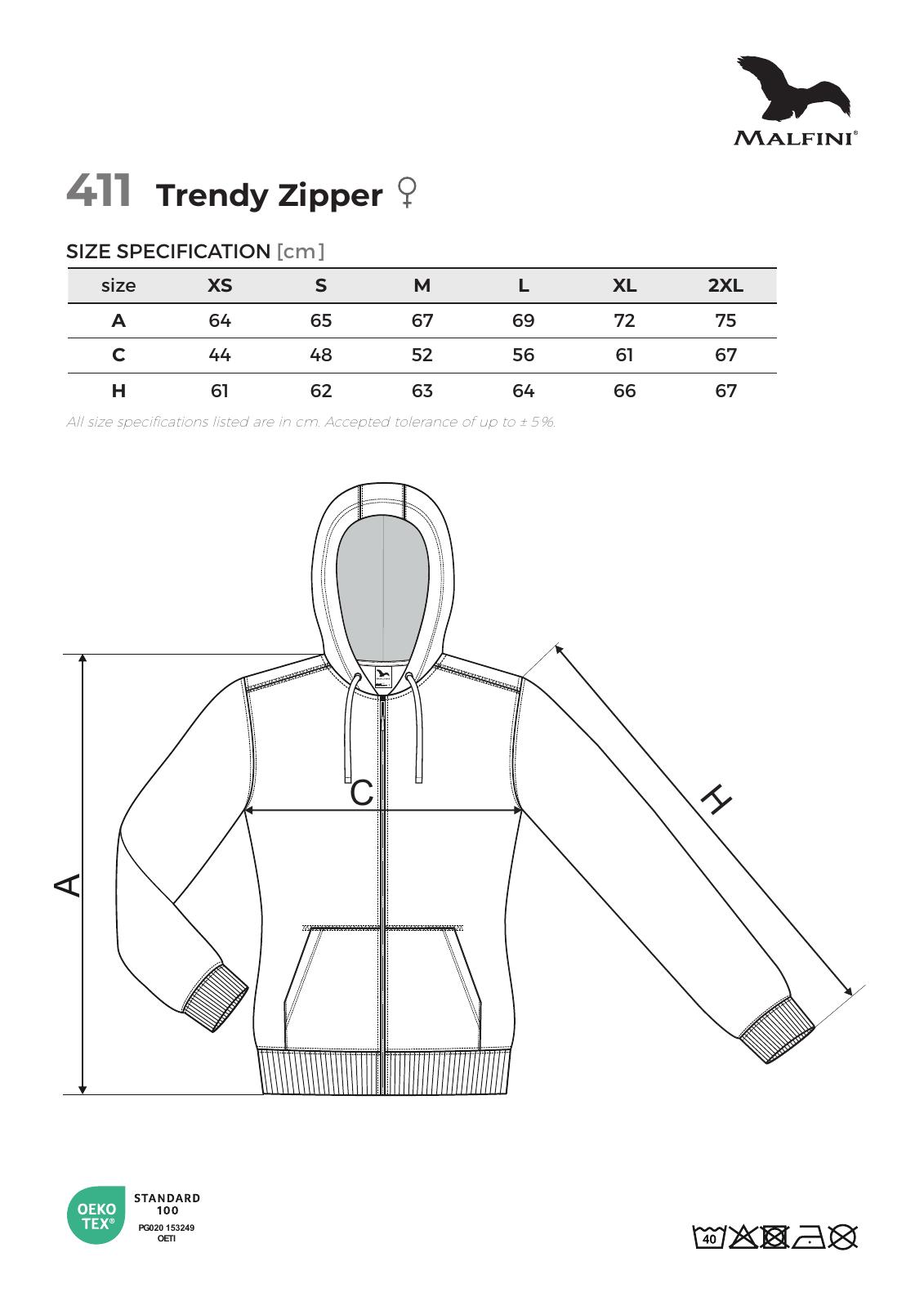 Malfini Trendy Zipper 411 – Ženska hoodica s patentnim zatvaračem